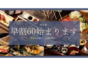 お得に泊まる早割60プラン 早めの予約でお得に泊まる、早割60プラン始まりました。 【和室・夕朝食付】囲炉裏会席堪能プラン 【グランピング・夕朝食付】手ぶらでBBQプラン どちらもご予約いただけます。 ぜひお得なプランでご宿泊ください。 2025/02/01 新着情報一覧へ
